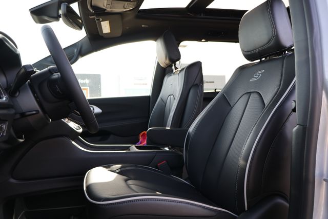 Step inside and be captivated by the Pacifica's luxurious Nappa Leather Bucket Seats with S Logo, which offer unmatched comfort and support. The advanced 360 Surround View Camera System and ParkSense Front/Rear Park Assist with Stop provide effortless maneuverability, while the Hands Free Sliding Doors and Power Liftgate ensure seamless access.