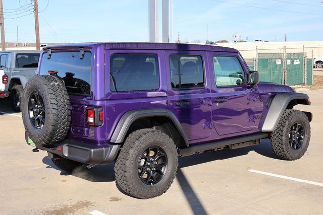 Beneath its striking Purple exterior lies a heart of pure adventure. The Wrangler Willys is equipped with a robust 2.0L I4 DOHC engine, paired with an 8-Speed Automatic transmission and legendary 4WD system, ensuring you conquer any terrain with confidence. With an impressive 20 city and 22 highway MPG, this Jeep balances power and efficiency, making it the perfect companion for your off-road excursions and daily commutes alike.