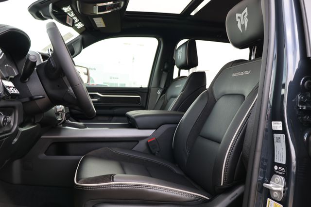 The interior of the Laramie is equally impressive, with luxurious leather-trimmed seats, heated and ventilated front seats, and a 12" color display cluster. Stay connected with the Uconnect 5 navigation system, SiriusXM with 360L, and Apple CarPlay/Android Auto integration.
