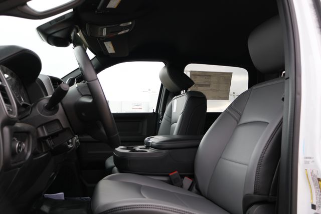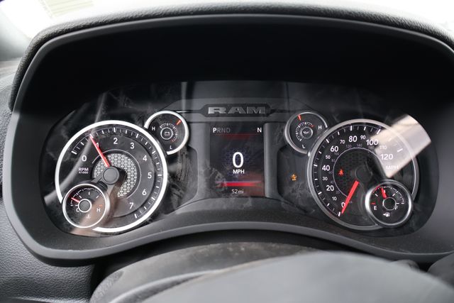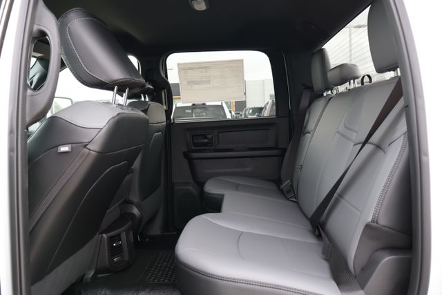But this truck isn't just about functionality it also offers a host of comfort and convenience features. The 4G LTE Wi-Fi Hot Spot keeps you connected on the job, while Apple CarPlay and Android Auto seamlessly integrate your smartphone. The illuminated entry and 40/20/40 split bench seat provide a welcoming and versatile interior, and the 18-inch black painted steel wheels give the Tradesman a rugged, confident stance.