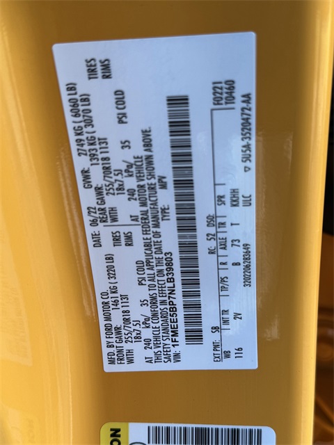 - VIN : 1FMEE5BP7NLB39803