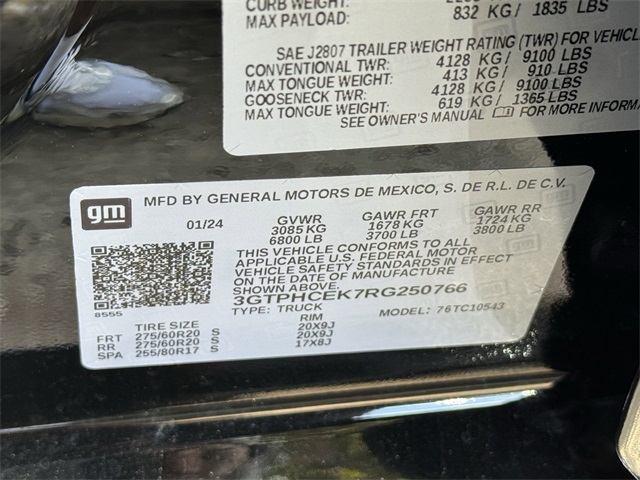 - VIN : 3GTPHCEK7RG250766